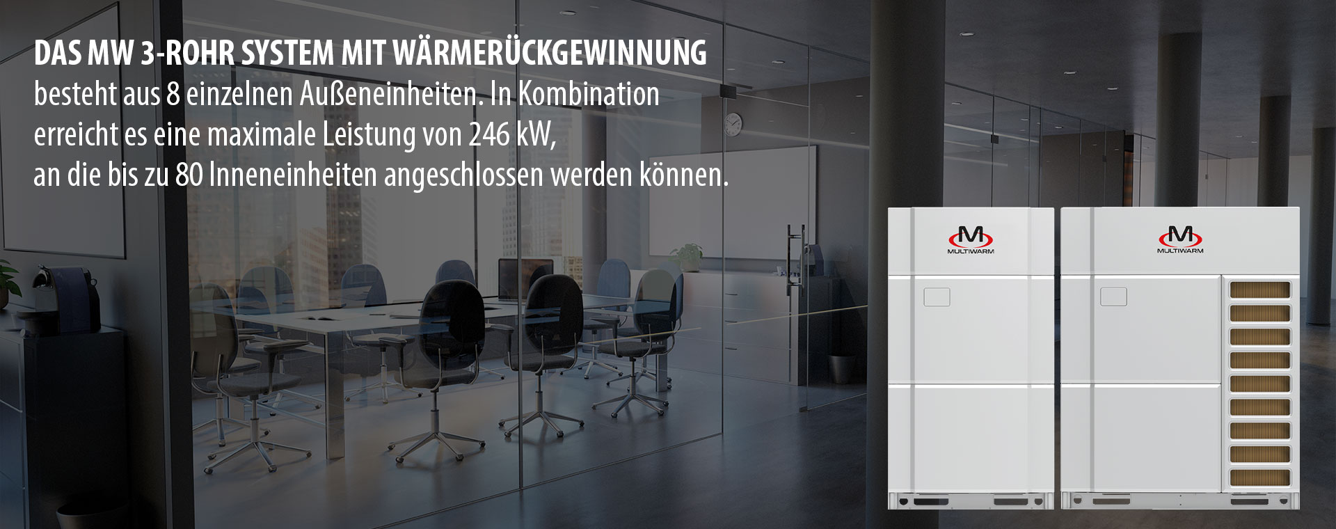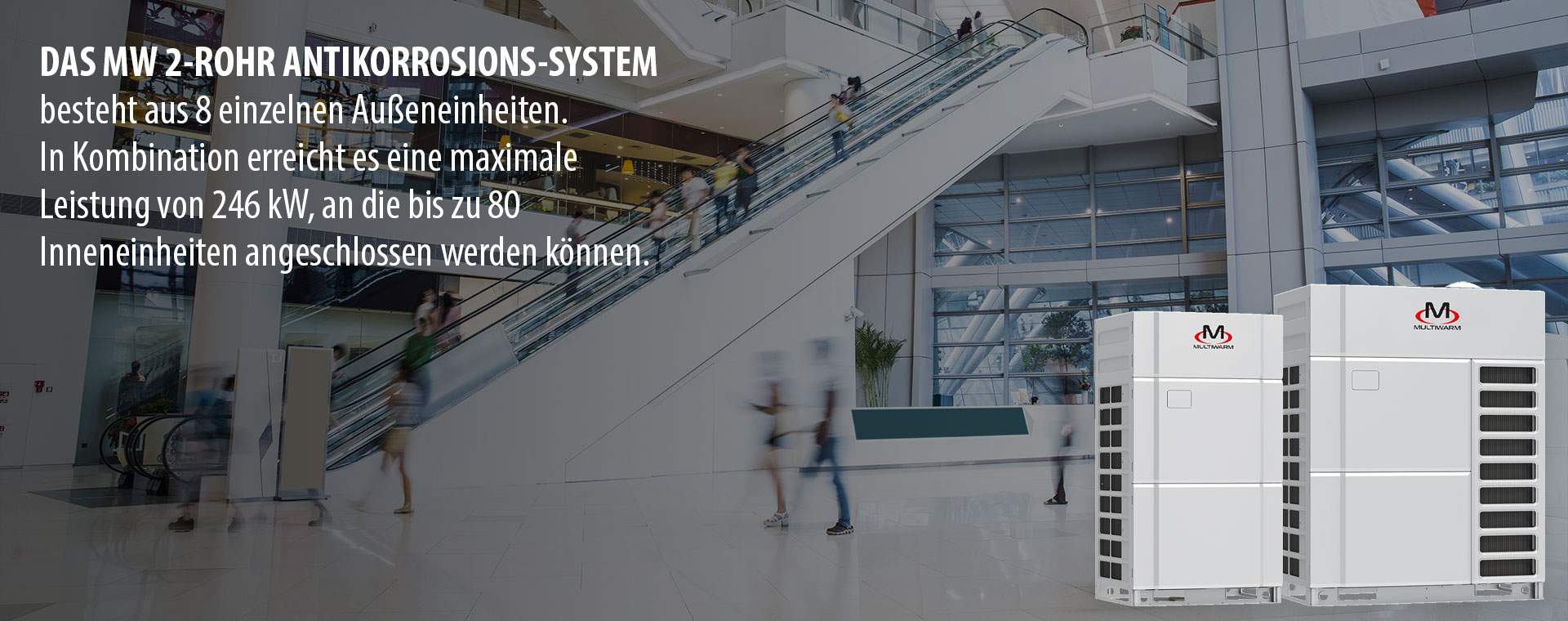 Dieses modulare System wurde für große gewerbliche Anlagen entwickelt und umfasst bis zu 8 miteinander verbundene Außengeräte mit einer Gesamtleistung von bis zu 246 kW.