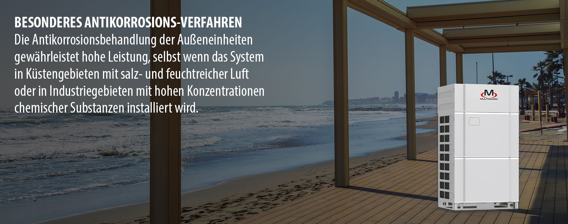 Es ermöglicht die Steuerung von bis zu 80 Innengeräten mit korrosionsgeschützten Wärmetauschern und ist ideal für exponierte Umgebungen oder anspruchsvolle klimatische Bedingungen.