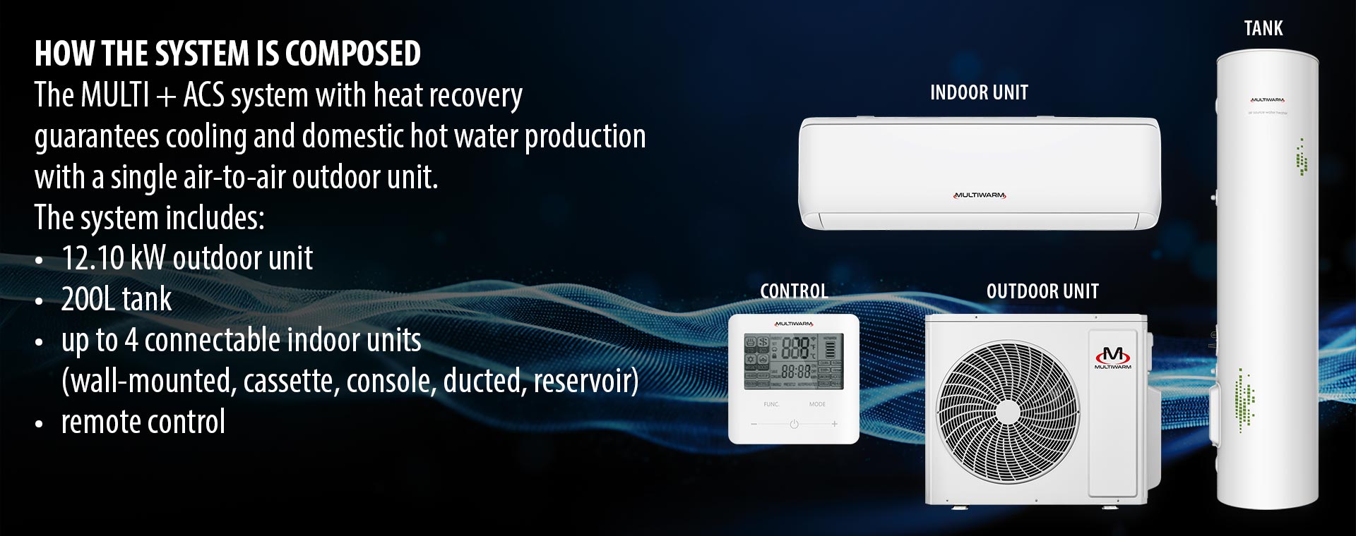MW MULTI+ACS can connect up to 4 indoor units, including the tank