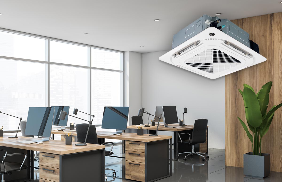 Cassetta a pompa di calore compatta, con soli 24,5 cm di profondità: la soluzione ideale per uffici e negozi, progettata per l’incasso nei controsoffitti standard.